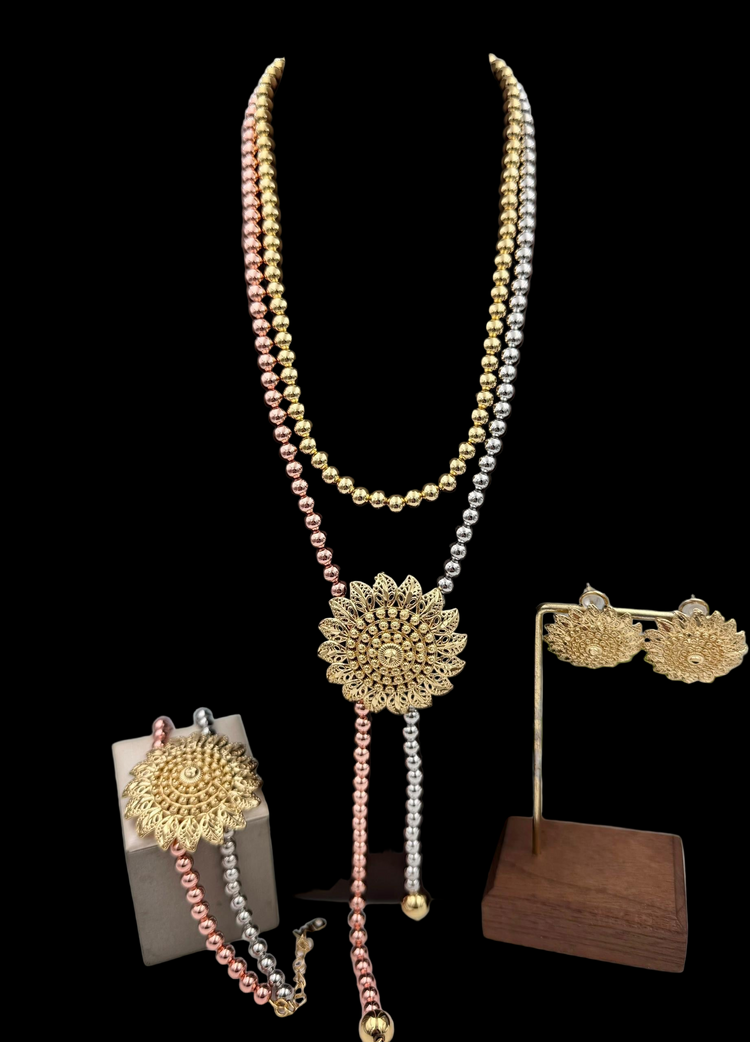 Non Tarnish Zirconia 3 tone necklace earrings and bangles