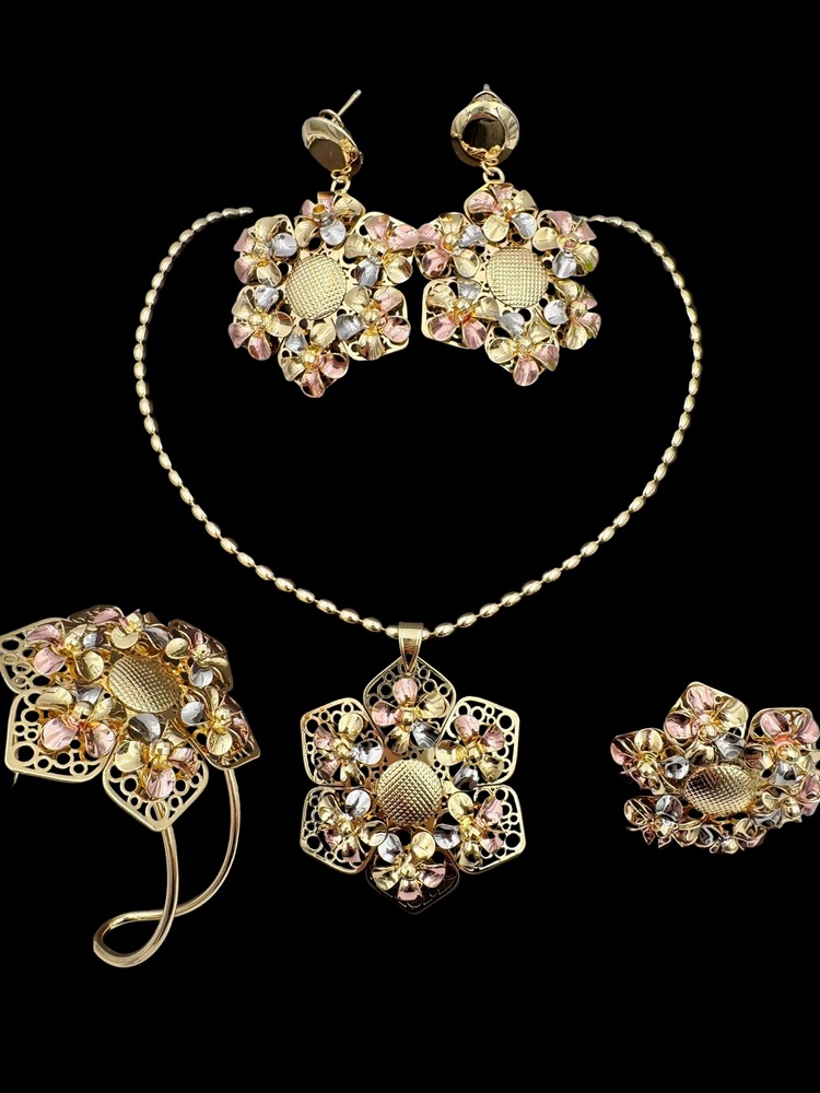 Non Tarnish Zirconia necklace, bracelet, earrings and ring