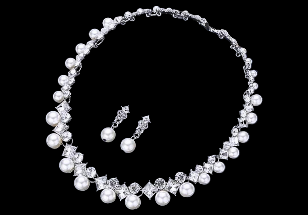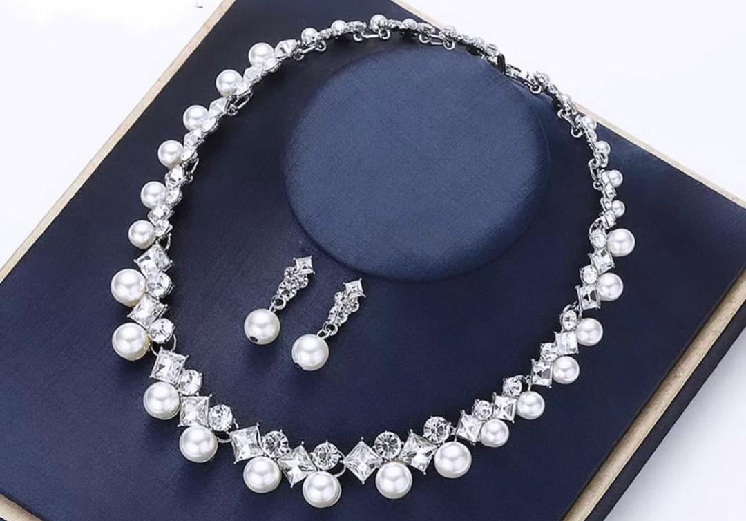 Non tarnish sparkling neckpiece and earrings